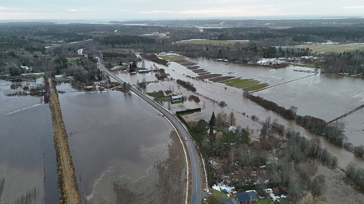 Kuva: Tulvan levinneisyys Teuvanjoella Savilahden sillalta yläjuoksun suuntaan 26.11.2024 © Etelä-Pohjanmaan ELY-keskuksen kuva-arkisto