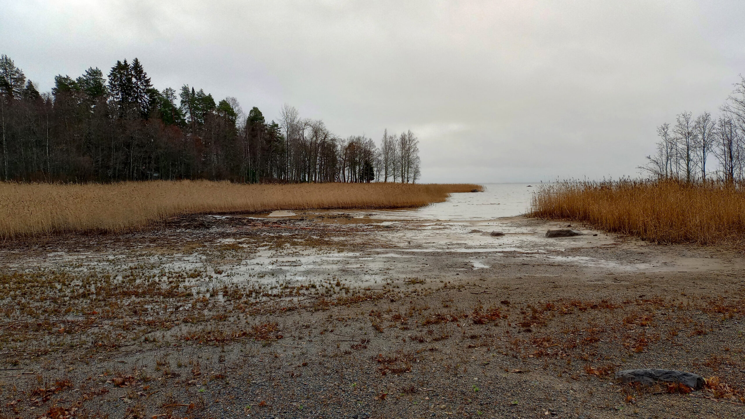 Kuva: Vesi oli matalalla Honkaniemen uimarannalla Joensuussa 9.11.2025. © Ilkka Elo / Pohjois-Karjalan ELY-keskus.