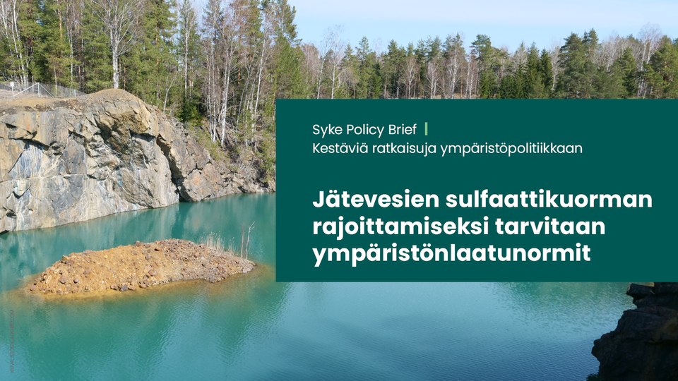 Siirtyminen puhtaaseen energiaan ja vihreä siirtymä ovat tuomassa Suomeen kaivostoimintaa ja akkuteknologiateollisuutta. Tämän seurauksena jätevesien sulfaattikuorma sisävesiin ja Itämereen kasvaa. Sulfaatilla on vesistöissä myös hyödyllisiä vaikutuksia, eikä sulfaattia nykyisin luokitella haitalliseksi aineeksi. Suuri paikallinen kuorma voi kuitenkin vaikuttaa haitallisesti vesieliöstöön etenkin järvissä, joissa sulfaattia on niukasti. Suomen ympäristökeskuksen uusi Policy Brief -julkaisu antaa suosituksia jätevesien sulfaattikuorman haittojen vähentämiseksi.
