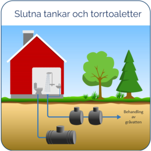Det vanligaste sättet att behandla enbart toalettavloppsvatten är att samla det i en sluten tank. Från tanken transporteras vattnet med slambil till avloppsreningsverket. För gråvattnet byggs då ett eget behandlingssystem.