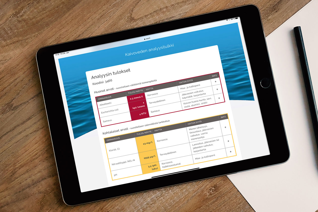 Analystolken berättar om brunnsvattnet är bra eller dåligt, vilken olägenhet den dåliga vattenkvaliteten kan medföra, vilka de sannolika orsakerna till den dåliga kvaliteten är samt vad man kan göra för att förbättra situationen. De åtgärdsförslag som analystolken lägger fram är riktgivande och innan man vidtar åtgärder lönar det sig alltid att be en expert inom området om extra hjälp.