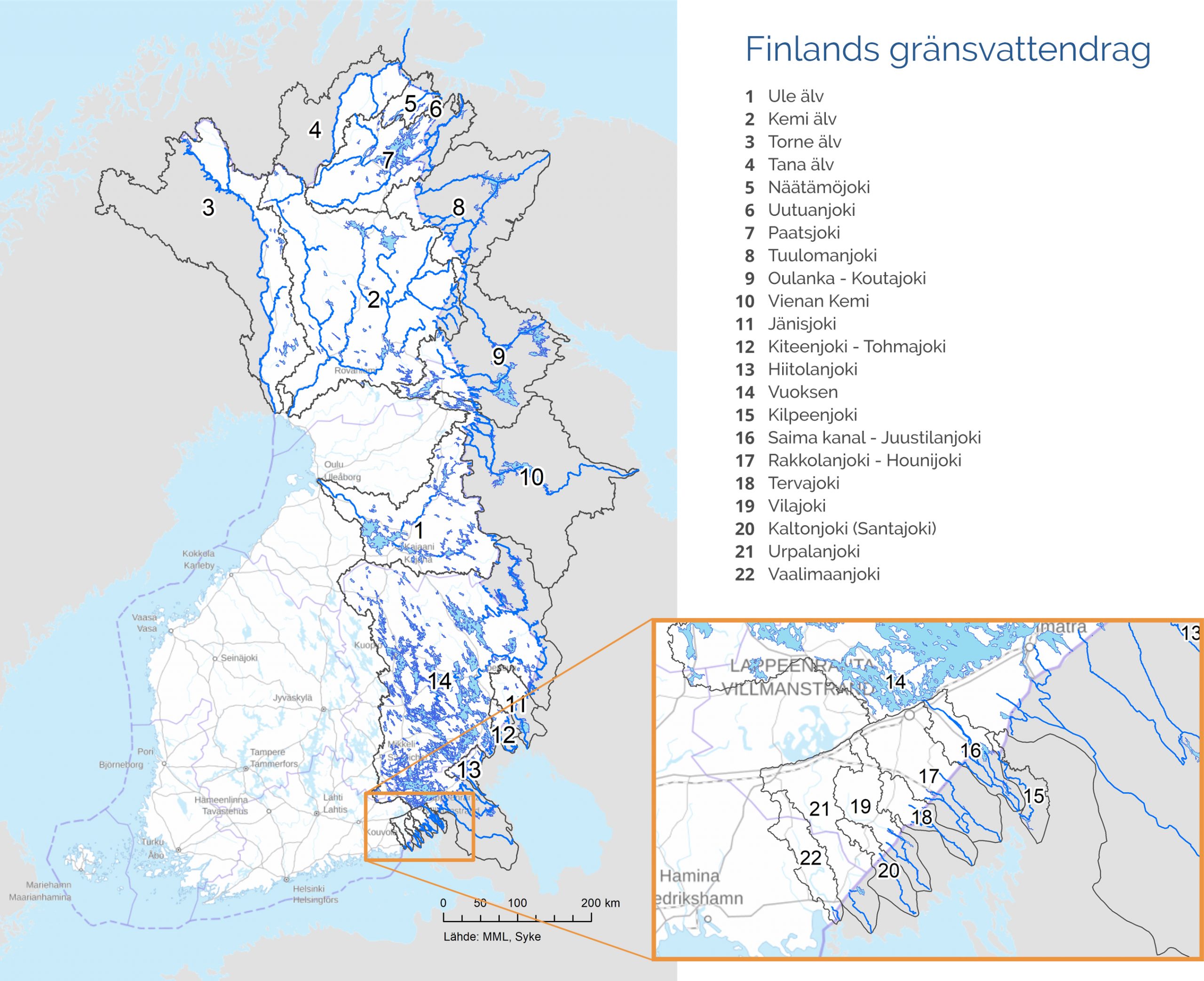 I Finland finns det vattenområden som vi delar med Sverige, Norge och Ryssland. Dessa vattenområden ska förvaltas och användas gemensamt. Gränsvattensamarbetet grundar sig på fördrag mellan länderna och uppfyller kraven i de internationella konventionerna om gränsvattendrag.