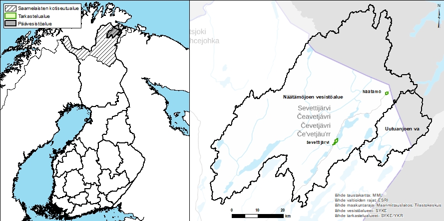 Näätämö- ja Uutuanjoen vesistöalueet sijoittuvat Suomessa pääosin Inarin kunnan alueelle. Osa Näätämöjoen vesistöalueesta sijoittuu Utsjoen kunnan alueelle. Näätämöjoen vesistöalueen asutuskeskittymät ovat Sevettijärven ja Näätämön kylät. Näätämö sijaitsee Norjan rajan tuntumassa. Sevettijärven kylä sijaitsee 110 kilometrin päässä Inarista, ja siellä on mm. peruskoulun ala-aste ja yläaste sekä terveystalo (Lapin liitto 2008).